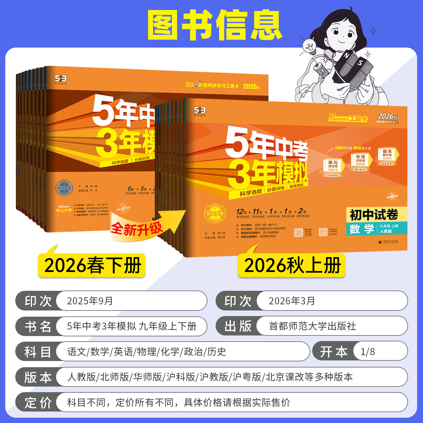 2026秋春版五年中考三年模拟全套试卷,涵盖七至九年级各科,内容权威,助力中考冲刺!【赠运费险】