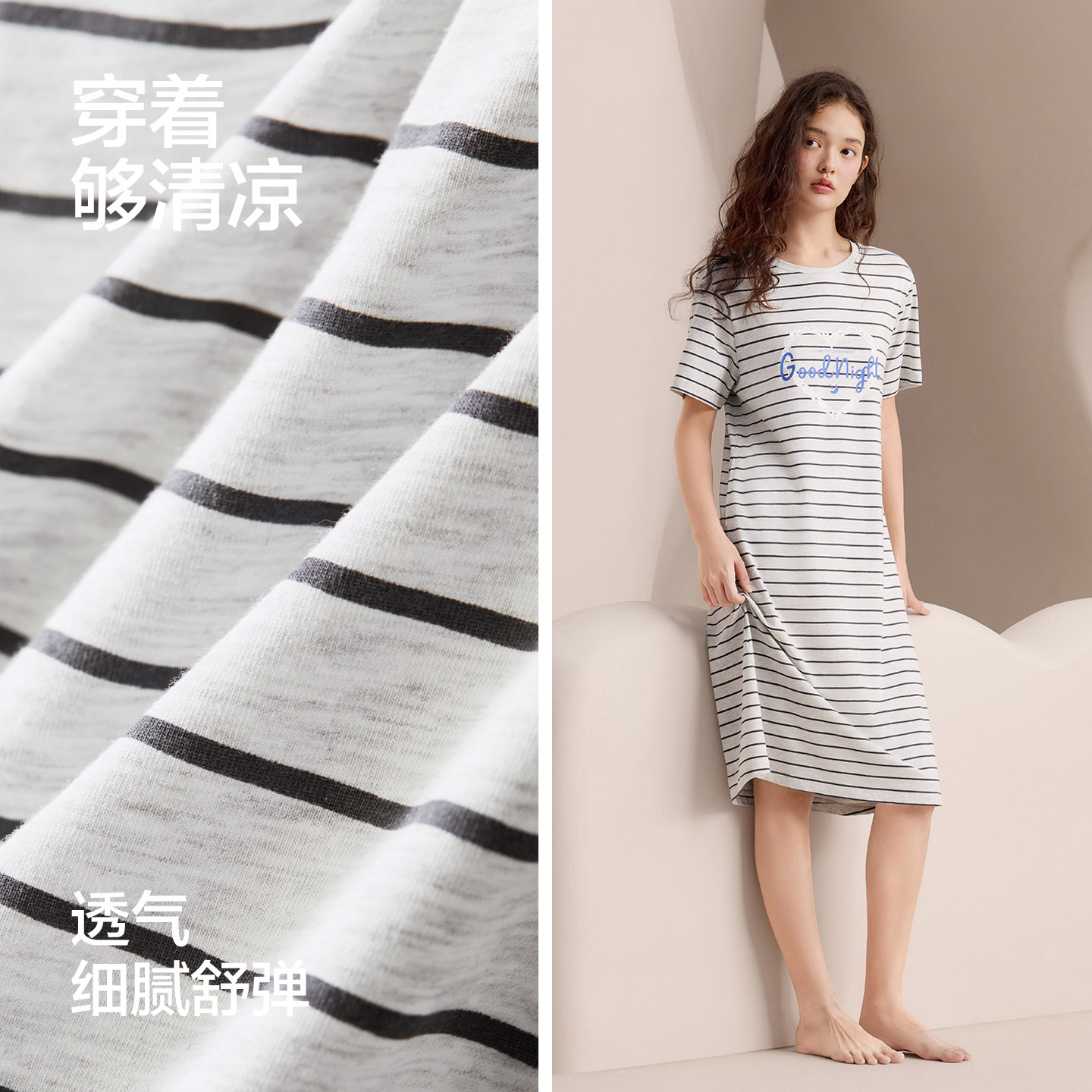 夏日必备!红豆凉感睡裙女,莫代尔材质清爽透气,条纹设计时尚百搭,可外穿更显松弛感,舒适度满分!