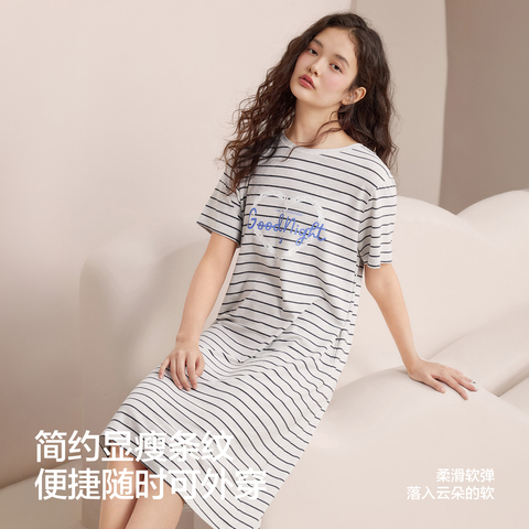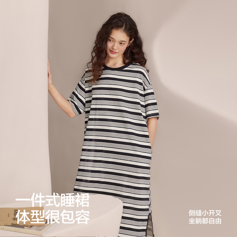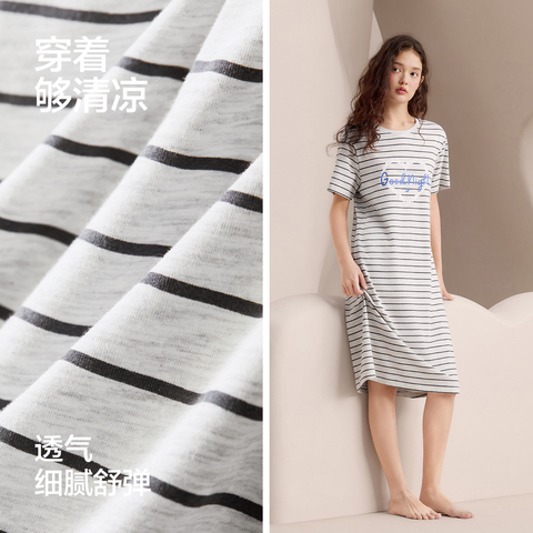 57( HU108 lML554cUx6t) https://m.tb.cn/h.iOrmfhD 红豆凉感睡裙女夏天条纹短袖宽松睡衣裙莫代尔可外穿松弛感家居服