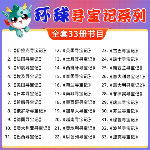 环球寻宝记全套33册世界文明寻宝记系列书世界寻宝记全套书正版书外国寻宝记正版全套美国日本埃及第一本历史知识漫画书 新华书店 【售价】:¥12.60 【券后】:¥7.60 【优惠券】:¥5 推荐理由:【新华书店】正版全套33册《环球寻宝记》!世界文明+历史知识漫画,适合孩子阅读学习,内容丰富有趣,新华书店正品保障,培养孩子兴趣与知识双提升! 👉复制这条信息07( MF287 yc7CUDDrwhu) 打开【手机淘宝APP】即可领券购买:/