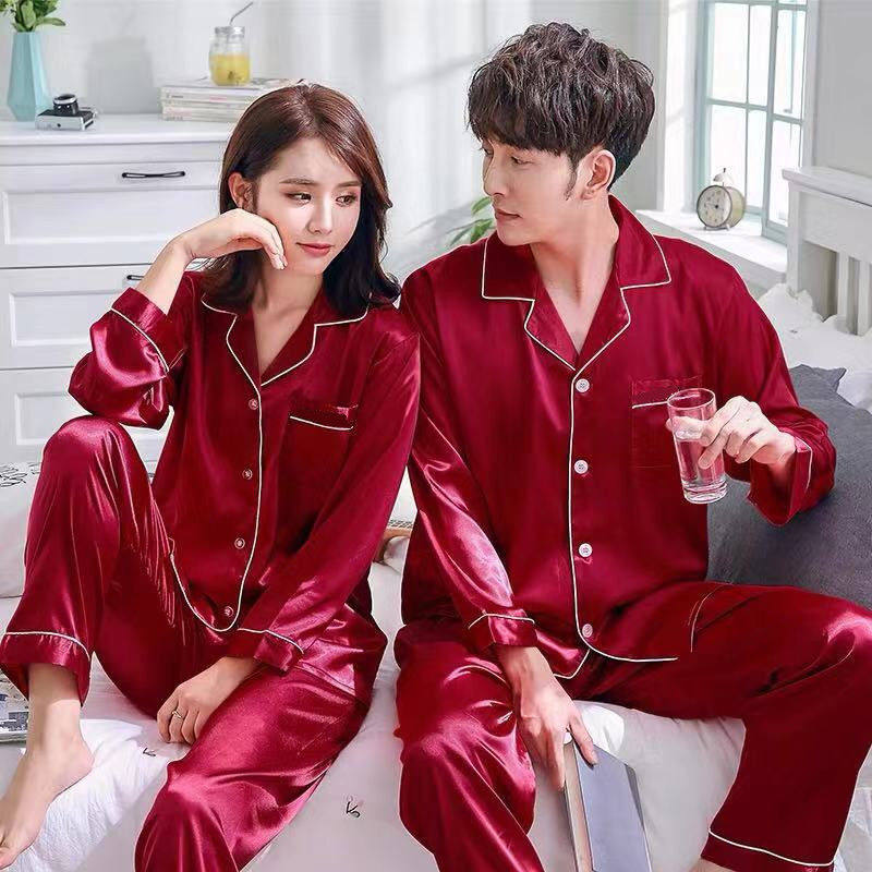 89( MF278 PpCA5lSrshI) https://m.tb.cn/h.iElC00e 春秋季情侣睡衣女夏天冰丝绸薄款男士仿真丝长短袖家居服套装