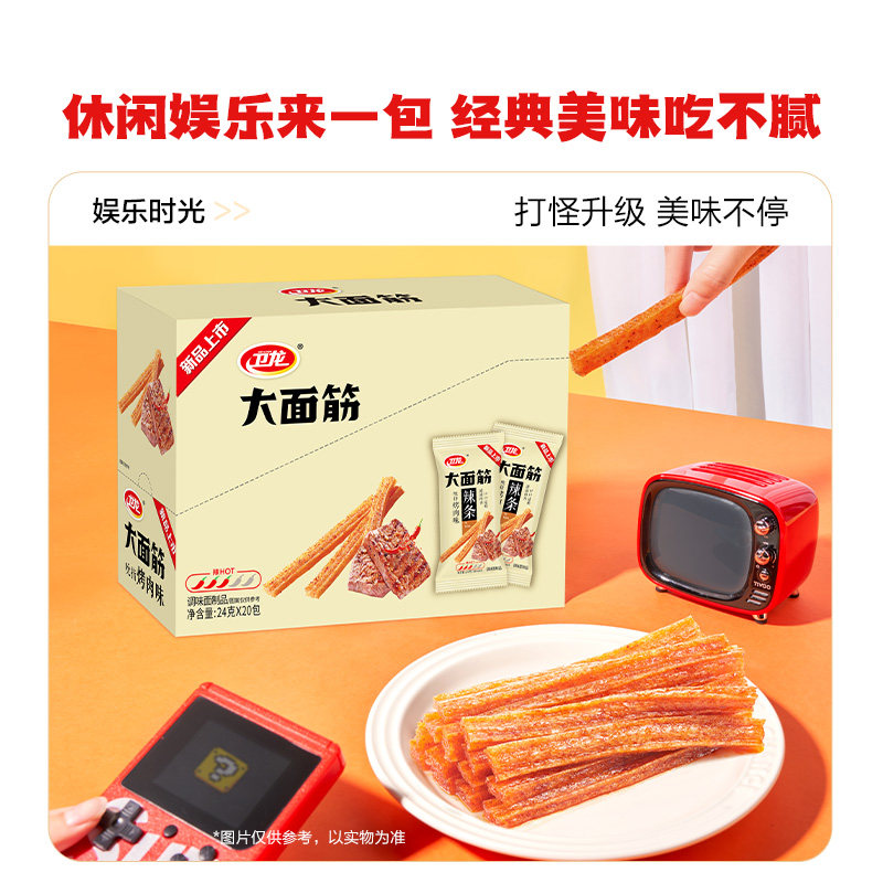 58( MF168 VJ5yUrK3QoL) https://m.tb.cn/h.i0YKsFC 卫龙辣条新口味吮指烤肉味大面筋休闲零食小吃豆干凑单夜宵零食品