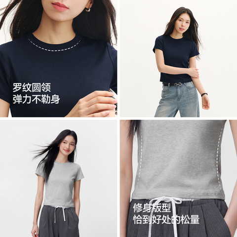 凉感T|森马短袖T恤女夏短款修身正肩圆领上衣2026新款百搭套头衫