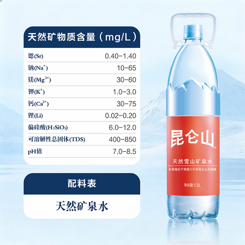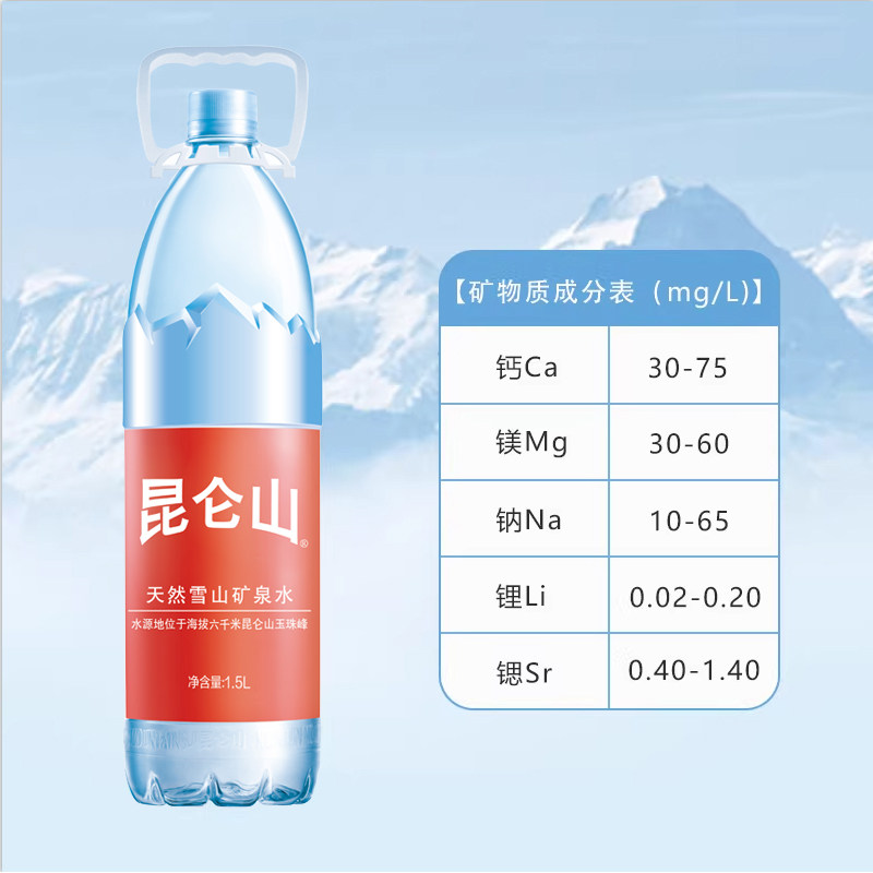 08( CZ005 eFxTUHiLmat) https://m.tb.cn/h.iYuyQqM 昆仑山饮用天然矿泉水高端雪山水1.5Lx6瓶*5箱弱碱性品质好水整箱
