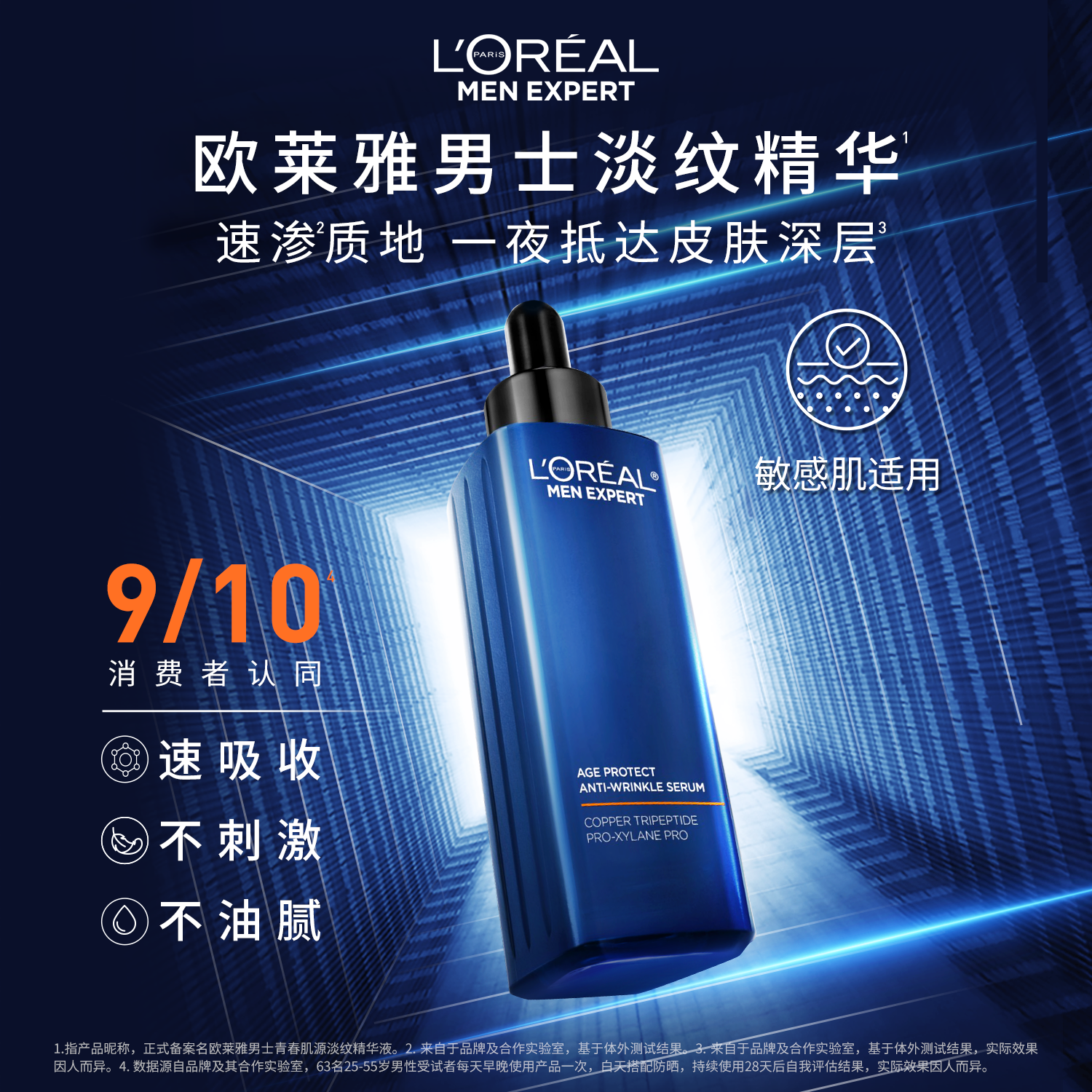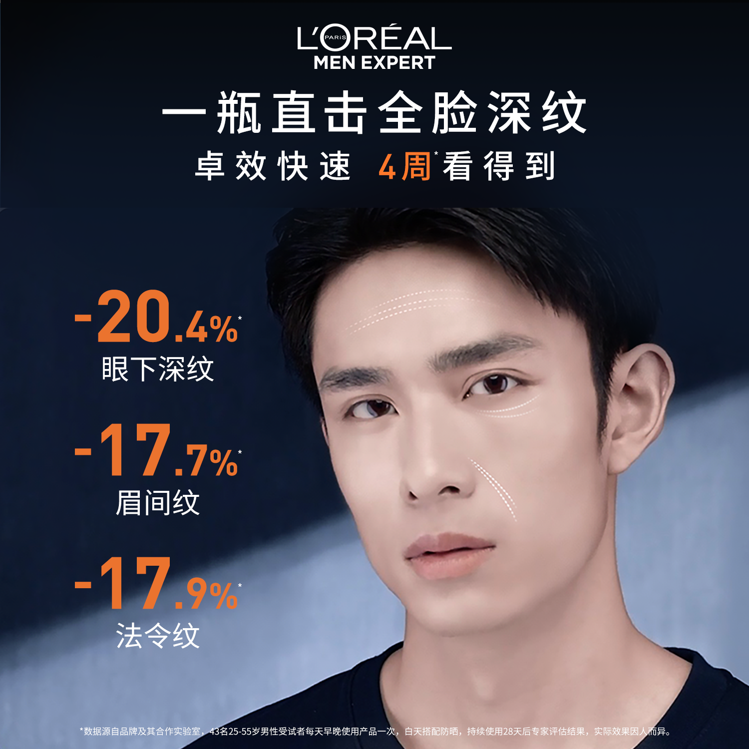 欧莱雅男士青春肌源淡纹精华液紧致抗皱抗老补水保湿护肤品套装