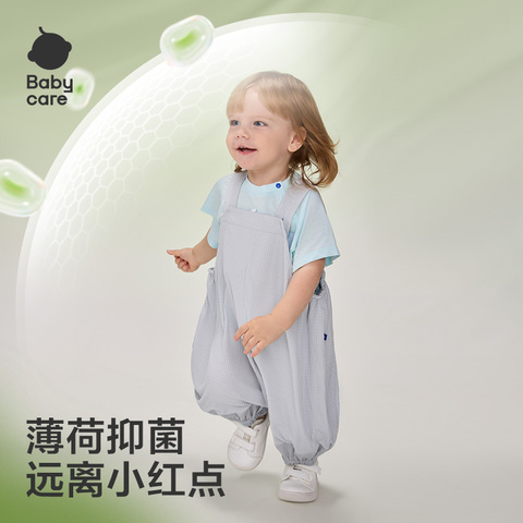 27( MF168 96vQUxqlAi8) https://m.tb.cn/h.ifUSYSn babycare儿童裤子薄荷女童休闲裤男童春装婴儿阔腿裤宝宝背带裤