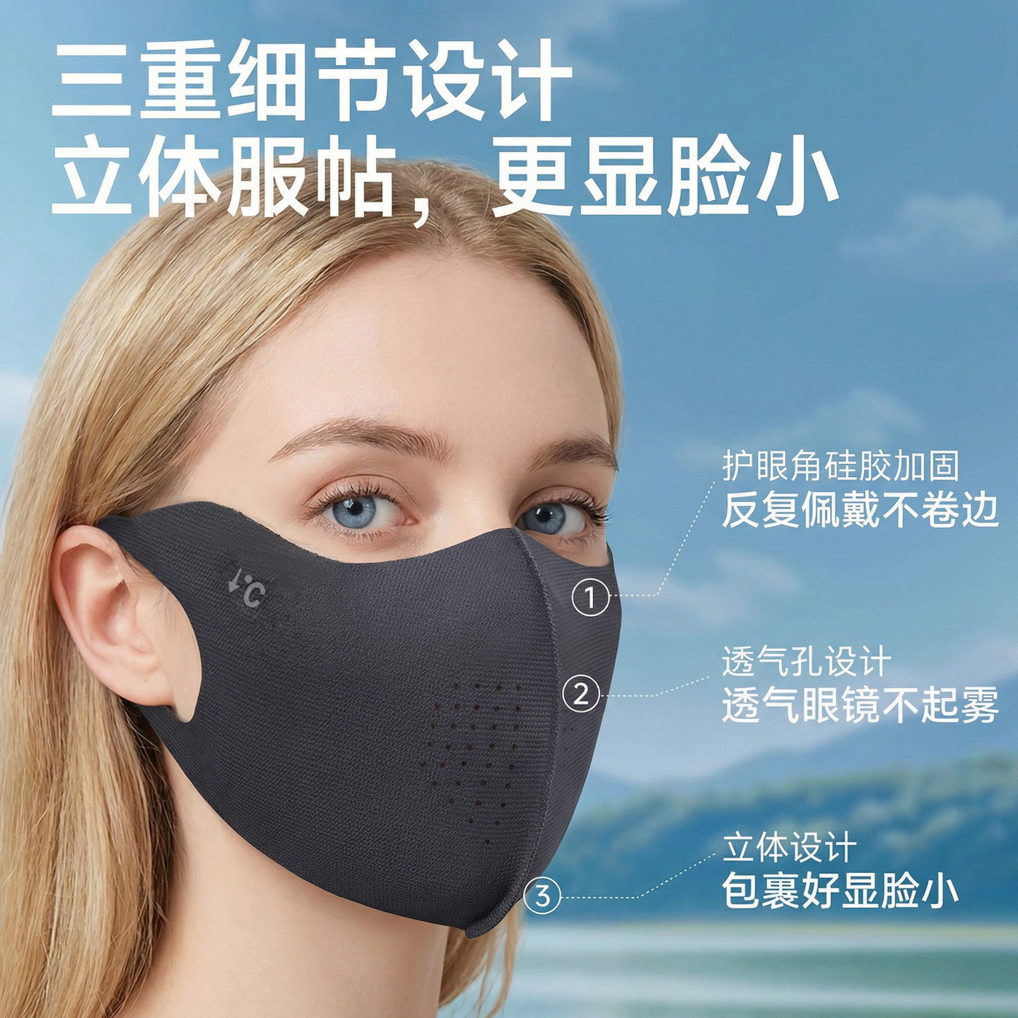 9.9到手三只!冰丝防晒口罩,多色可选,透气不闷,出门必备!UPF50+护眼角,透气显瘦,多色任选,轻薄防晒超划算!!!