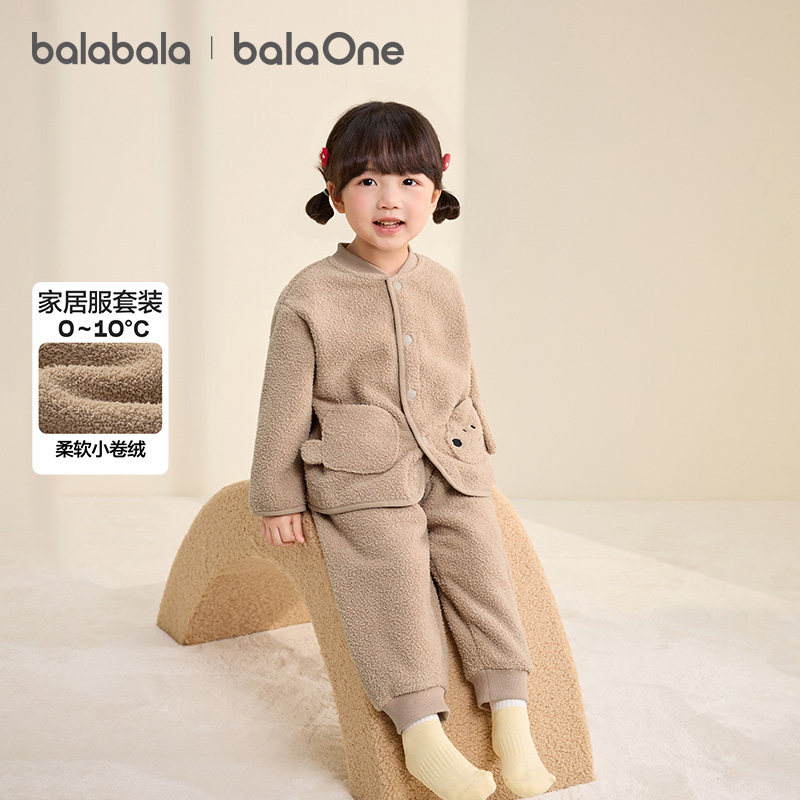 巴拉巴拉儿童家居服套装男童女童冬季新款半边绒居家睡衣可外出