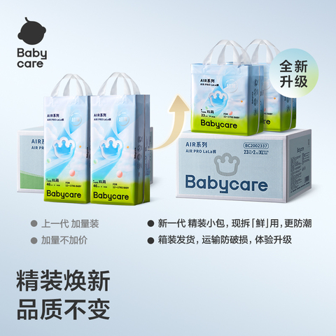【拍2件,立减79.1+20元券,叠3.78金币,凑单叠加88消费券到手163.1/2件,折81.55/件,折40.77/包】babycare拉拉裤AirPro极薄透气,L-XXXL大码,超薄设计不闷热,宝宝舒适一整天!