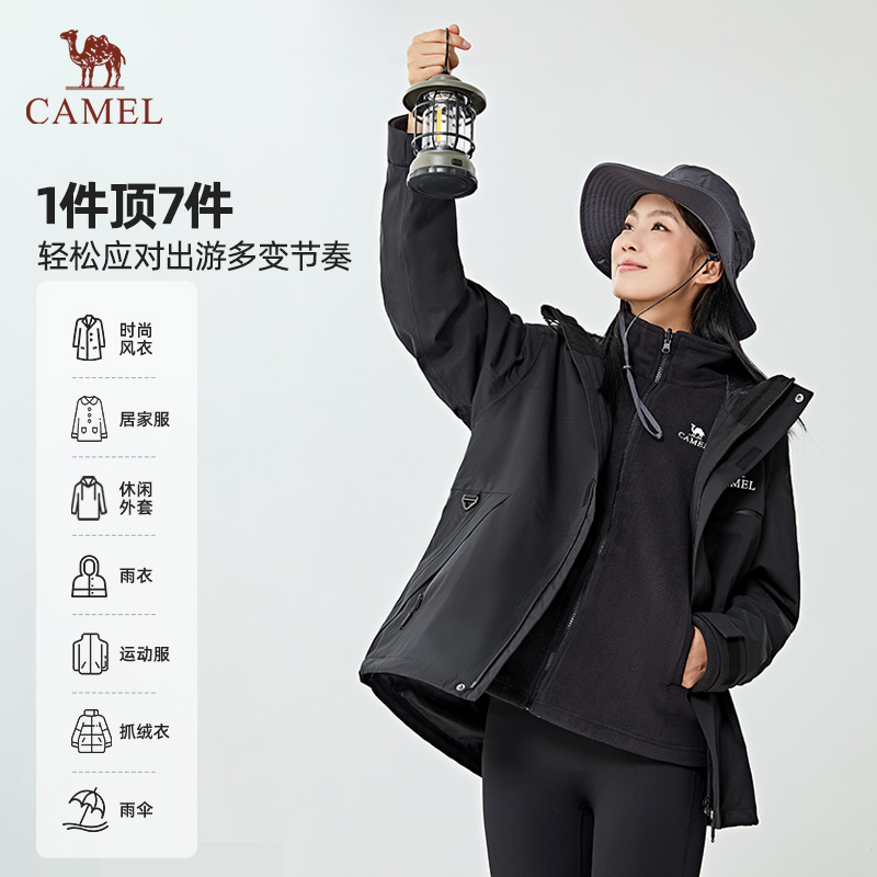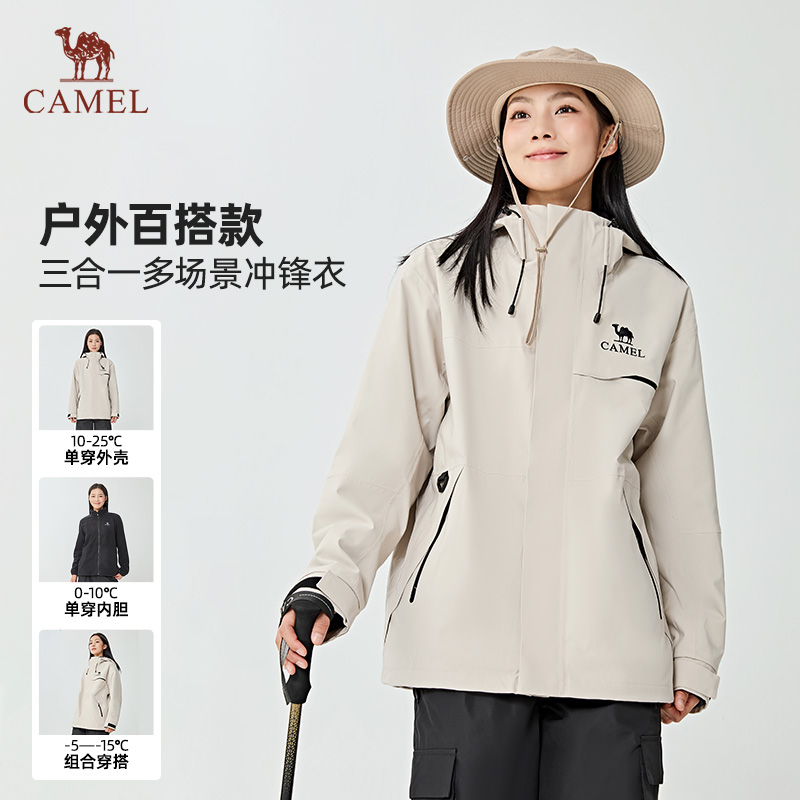 【追风者】骆驼三合一羽绒内胆户外冲锋衣防风防水外套三防登山服