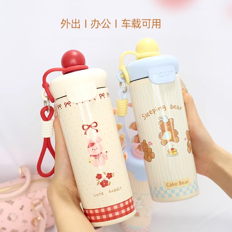 新款可爱卡通动物浮球杯316不锈钢保温杯学生儿童便携提绳吸管
