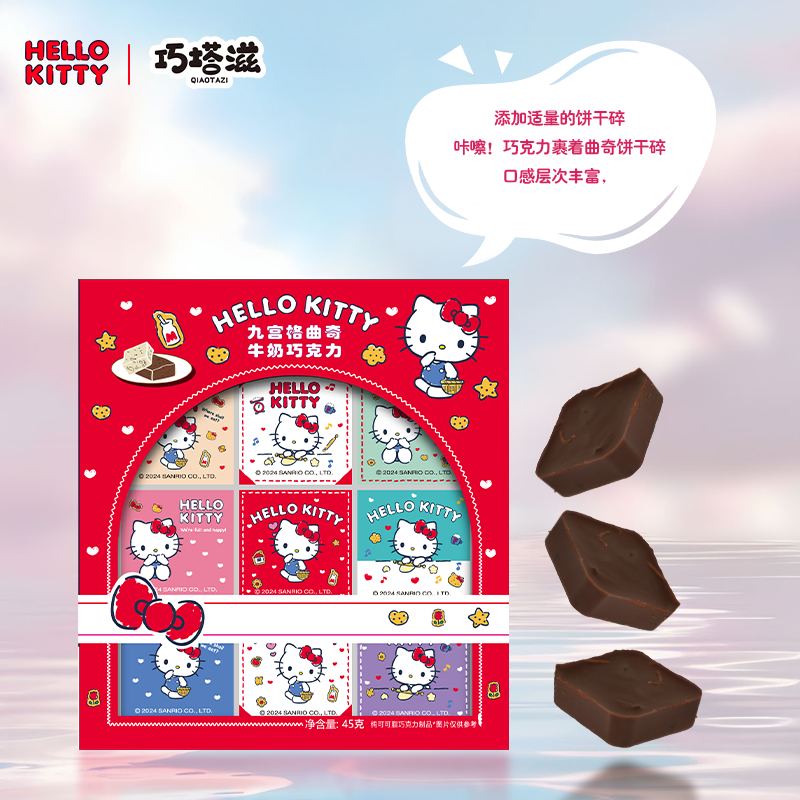 38¥ CZ001 n8nzftzOPI5¥ https://m.tb.cn/h.7cyfJu7 巧塔滋HelloKitty联名款九宫格牛奶巧克力三丽鸥正版纯可可脂
