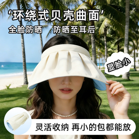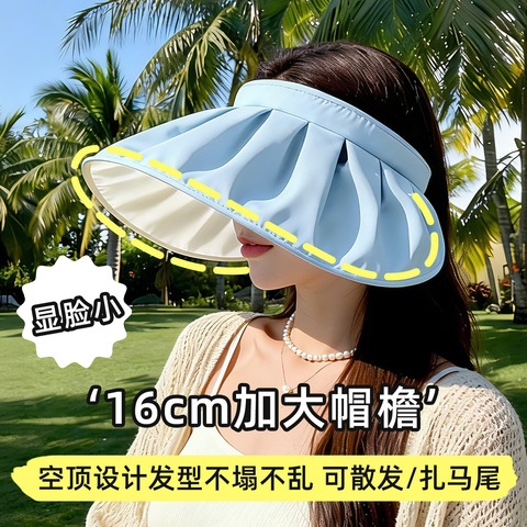 夏季防晒帽可折叠空顶帽时尚百搭大帽檐糖果色遮阳帽户外太阳帽