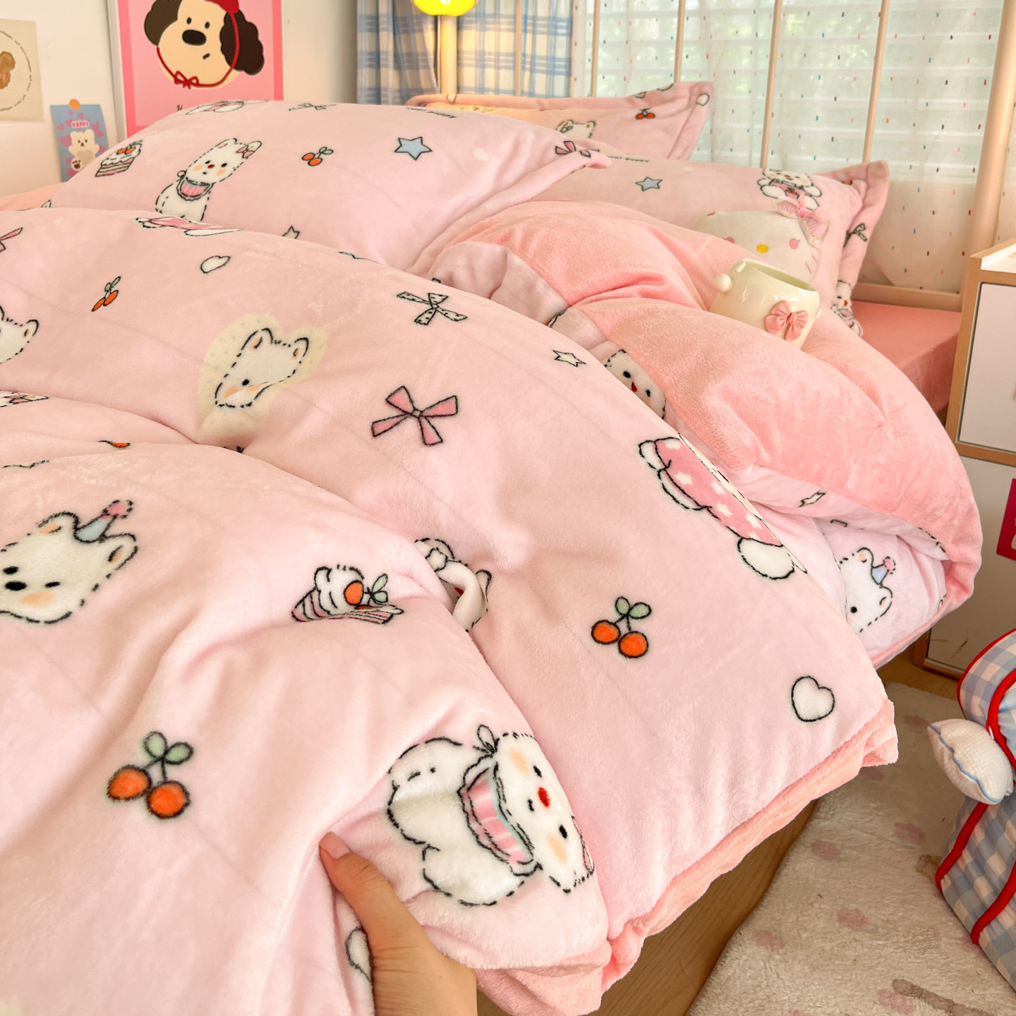 18¥ HU293 XsqtfG0WIpZ¥ https://m.tb.cn/h.7Xw79aL 卡通牛奶绒四件套A类加厚双面加绒被套床单床笠款床上用品三件套
