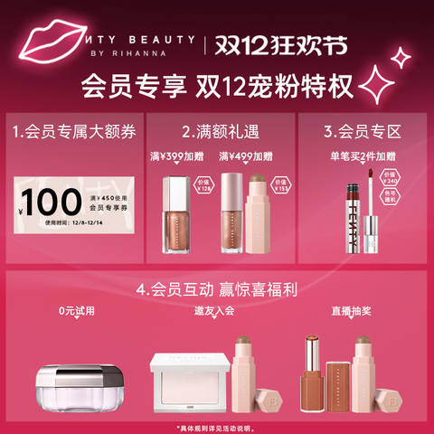 【会员买赠柔雾塑颜棒2.8g+羽感粉底乳5ml;叠20消费券到手288元】FentyBeauty蕾哈娜电光杀手锏粉饼,单双色高光珠光