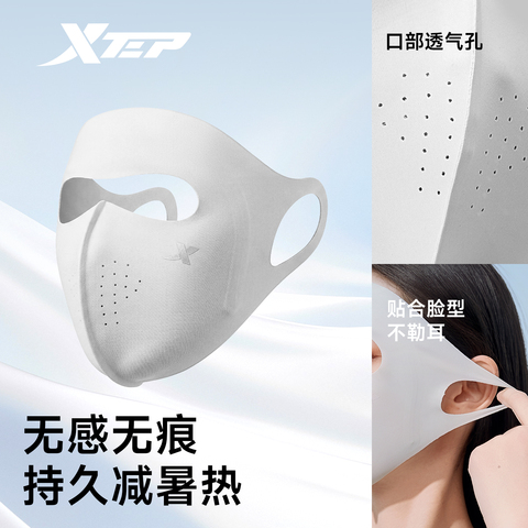 特步防晒面罩女款,全脸防护防紫外线,透气冰丝材质,骑行遮阳必备!夏季出行防晒神器,清爽不闷汗,舒适又时尚!