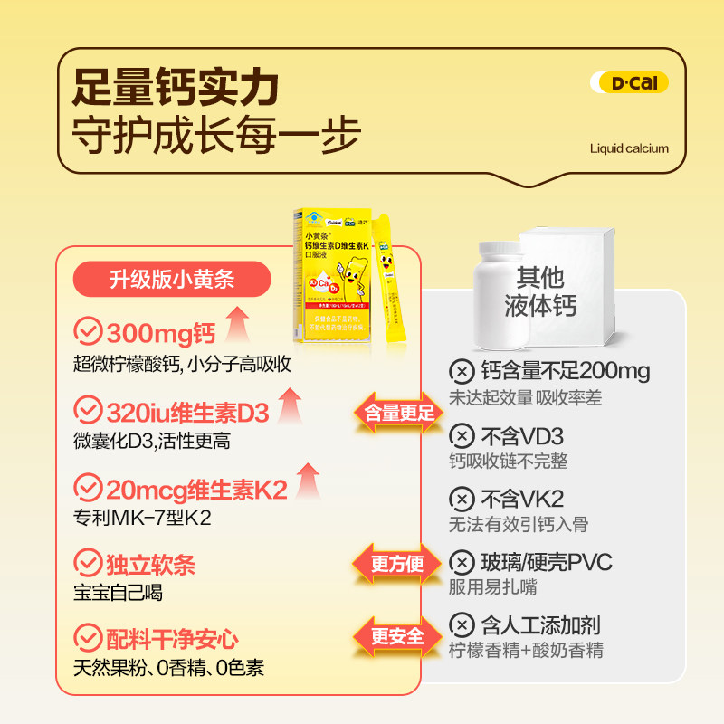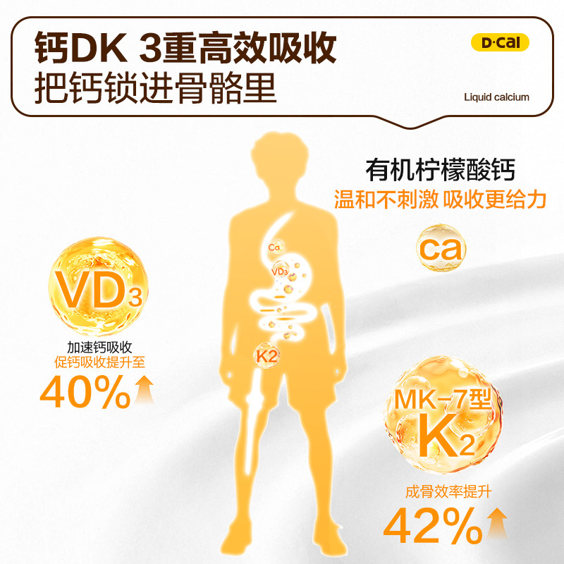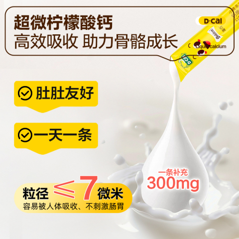 迪巧小黄条液体钙,蓝帽子认证,选用柠檬酸钙形式,更容易被孩子吸收。它是一款适合4岁以上儿童的成长高钙补品