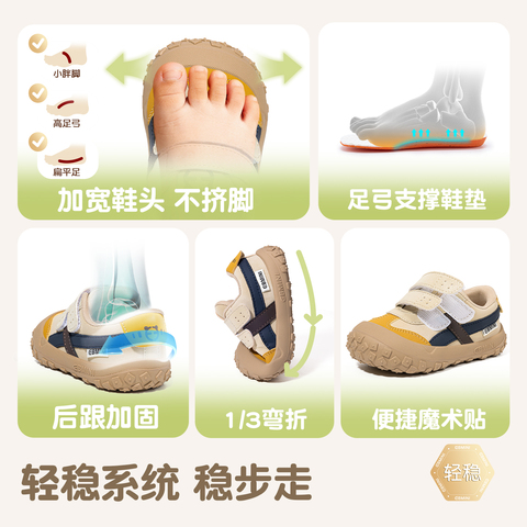 英贝米尼学步鞋专为0-3岁宝宝设计,超轻柔底+3D立体足弓支撑,稳走**步不累脚~159.9元入手国际母婴认证品牌!魔术贴开合便捷,透气网布+加宽前掌,舒适不挤脚更护足型~小脚丫的成长刚需,现在就安排