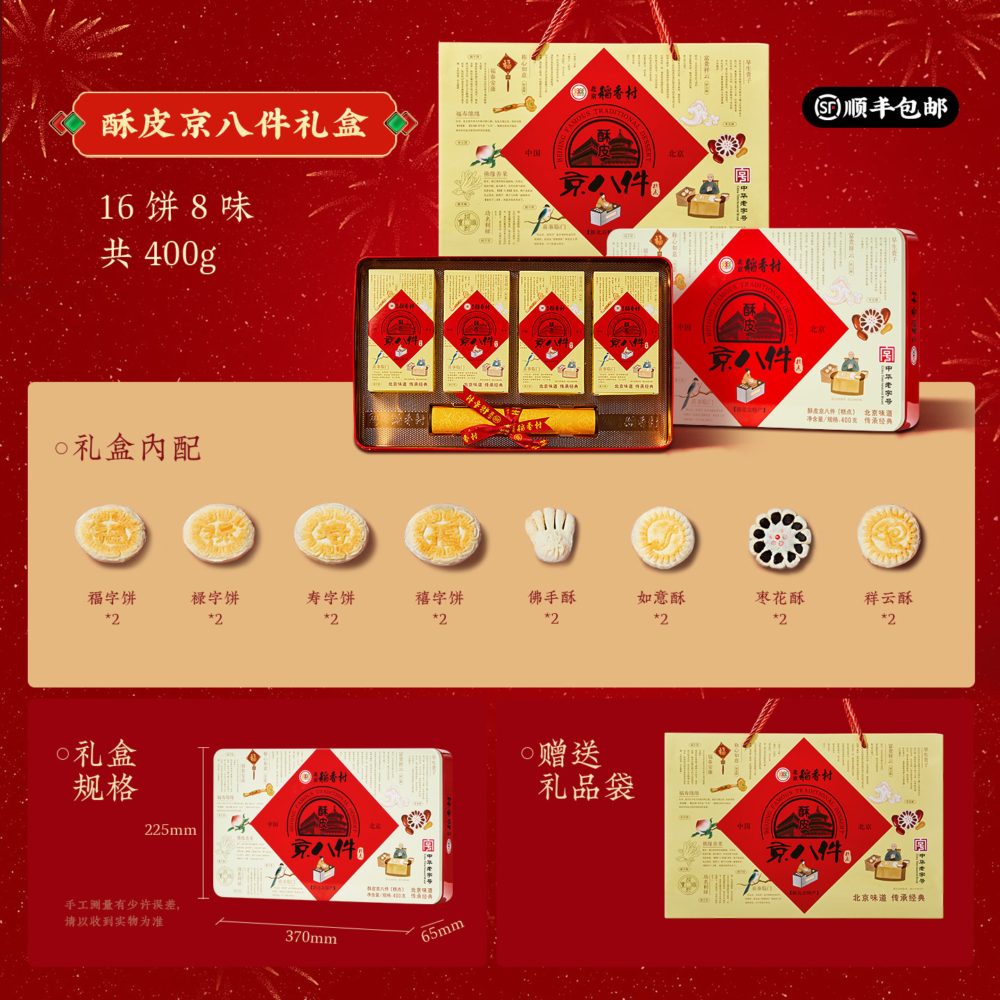 三禾北京稻香村酥皮京八件特产新中式糕点礼盒装送礼送长辈小吃