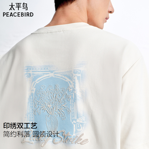 87( tG-#22>lD S9zr5P5DlOJ) https://m.tb.cn/h.iFZSJpw 太平鸟男装后背晕染印花短袖T恤2026夏新款圆领重磅体恤时尚半袖