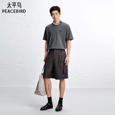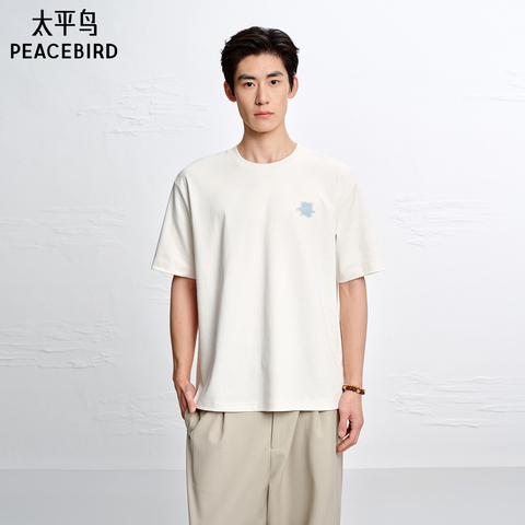 太平鸟男装小熊刺绣T恤纯色时尚情侣装2026夏新款体恤衫圆领半袖
