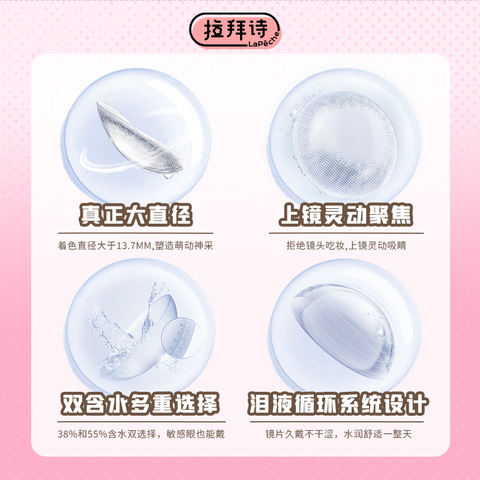 【原价73&活动到手43.2!+凑单88vip消费劵+叠加惊喜劵到手37.99!】拉拜诗日抛自然放大双眼,萌动大直径!干净清透舒服到像没戴,萌生温柔,瞳色自带柔光滤镜!上班上学、约会通勤,随手戴!