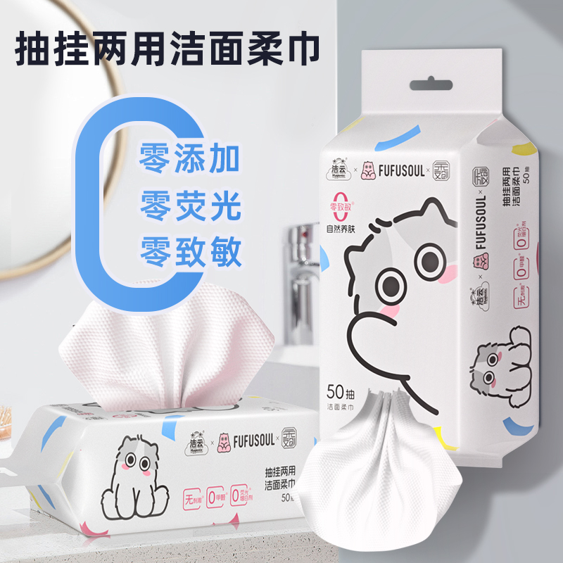 洁云FUFUSOUL联名挂抽两用洁面柔巾L码50抽单提洗脸巾