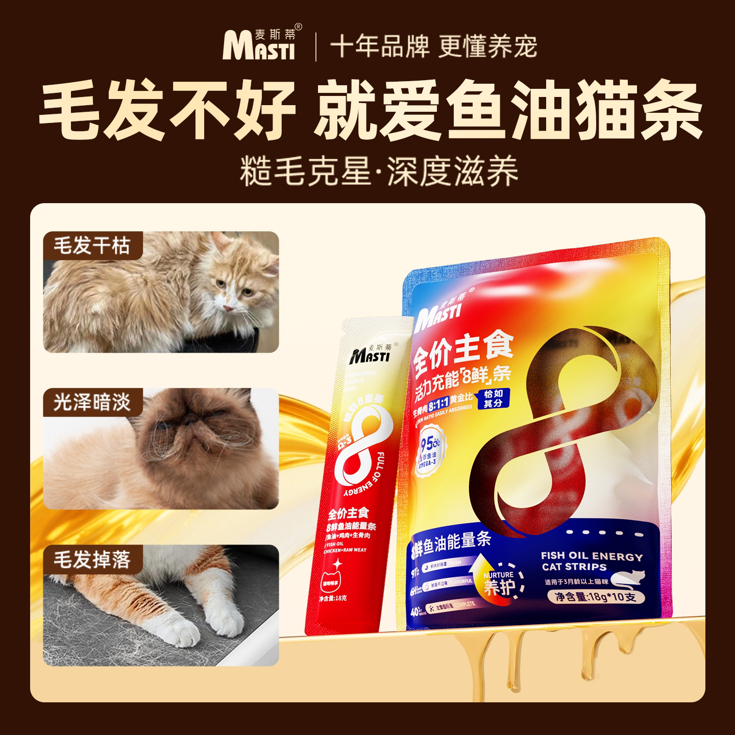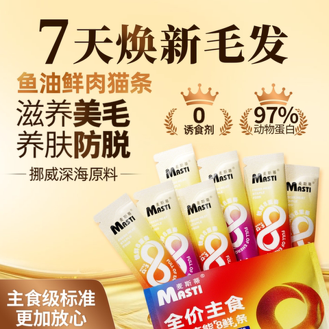 麦斯蒂鱼油猫条100支整箱主食级全阶段通用猫咪零食营养正品试吃