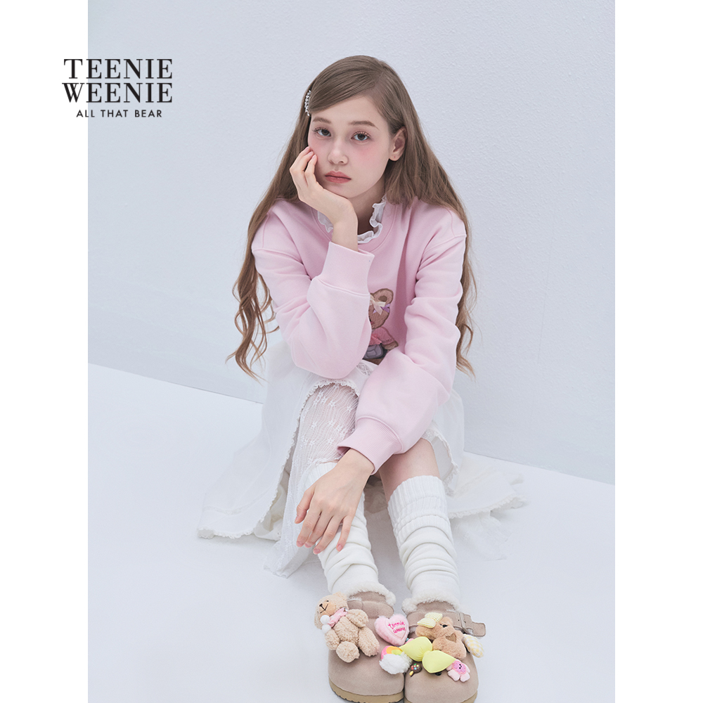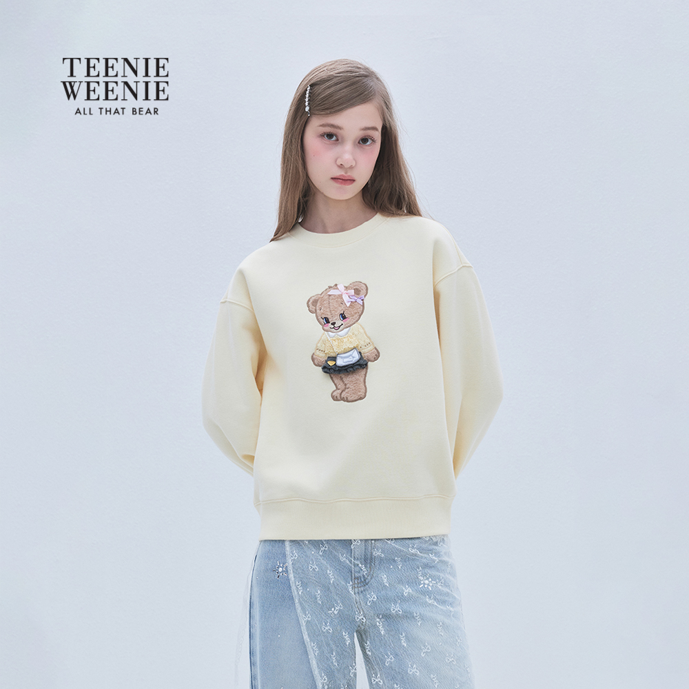 TEENIEWEENIE bearnova25年冬季新款女装萌趣熊立体刺绣圆领卫衣
