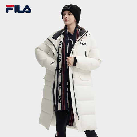 FILA斐乐长款羽绒服女冬季新款防泼水防油污防风连帽保暖外套