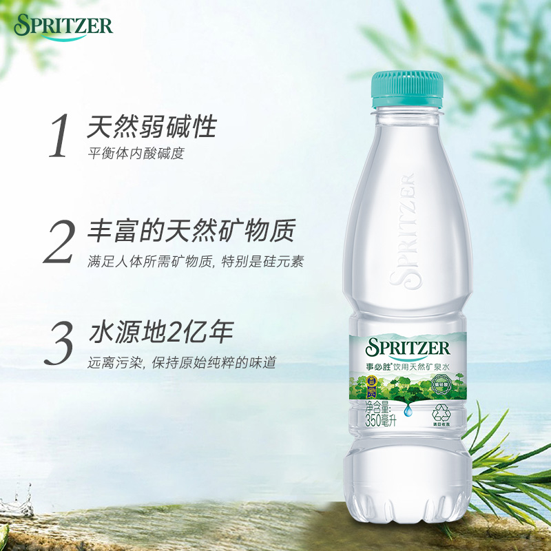 【活动价69.9-3.49(2减95折分摊)-7元(满69-10元分摊)-8.4立减-9.79元淘金币-4.88(满250-30消费券分摊)-1.37限时红包=34.97元/24瓶,折1.4一瓶】事必胜天然矿泉水!小瓶装方便随身带,矿泉水口感清冽。