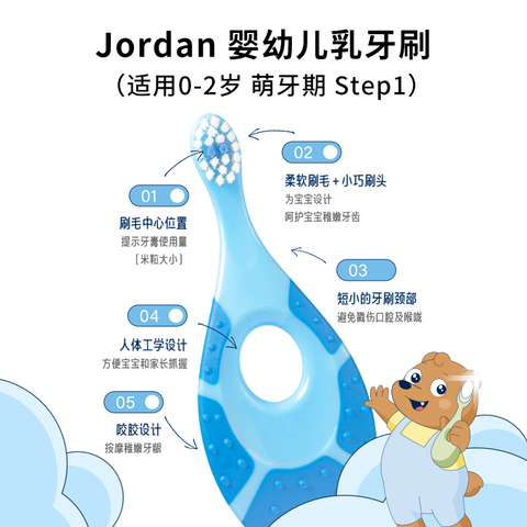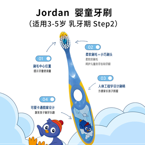 挪威Jordan儿童牙刷,0-9岁任选,挪威百年国民品牌原装进口,优质软刷毛呵护宝宝稚嫩乳牙