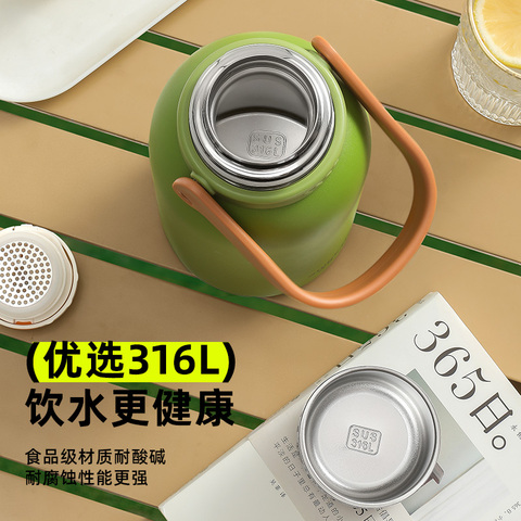 316L+陶瓷内胆【赠背带+茶隔盖+DIY贴纸+杯刷】1000ml316L不锈钢+新升级陶瓷覆层内胆,抗酸碱、无异味、不藏垢,长效保温能达24h!出门旅行必备~杯身防漏,出行无忧,无惧倒置,骑行,健身、登山带上它特方便~
