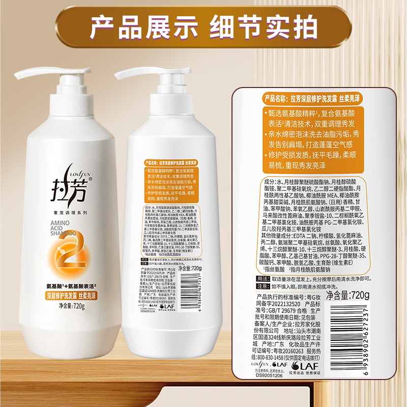 拉芳洗发水男女氨基酸深层修护洗发露720g持久留香控油蓬松柔顺