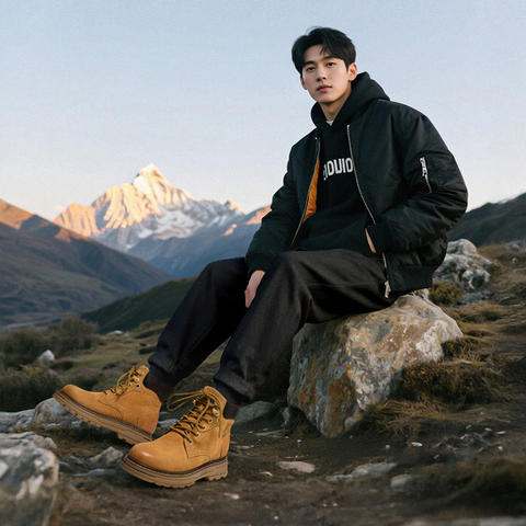 王俊凯同款骆驼马丁靴男款春季工装靴男生增高大黄靴户外男士鞋子