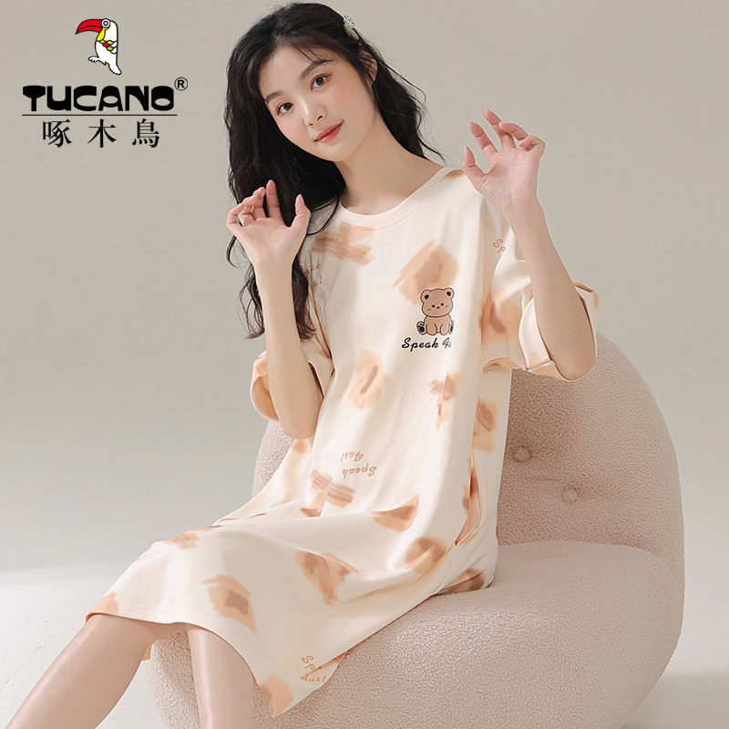 2026年新款啄木鸟可爱风女款睡裙,春夏季家居服套装,纯棉品质,可外穿设计,高级感十足,温柔甜美,舒适透气,适合居家或外出穿着!