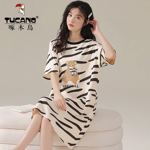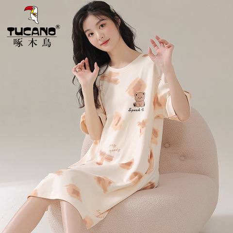 48( CA381 QW8r52G5Kgq) https://m.tb.cn/h.iQytbpy 啄木鸟甜美女士睡裙夏款短袖中长裙睡衣女夏季清新学生休闲家居服