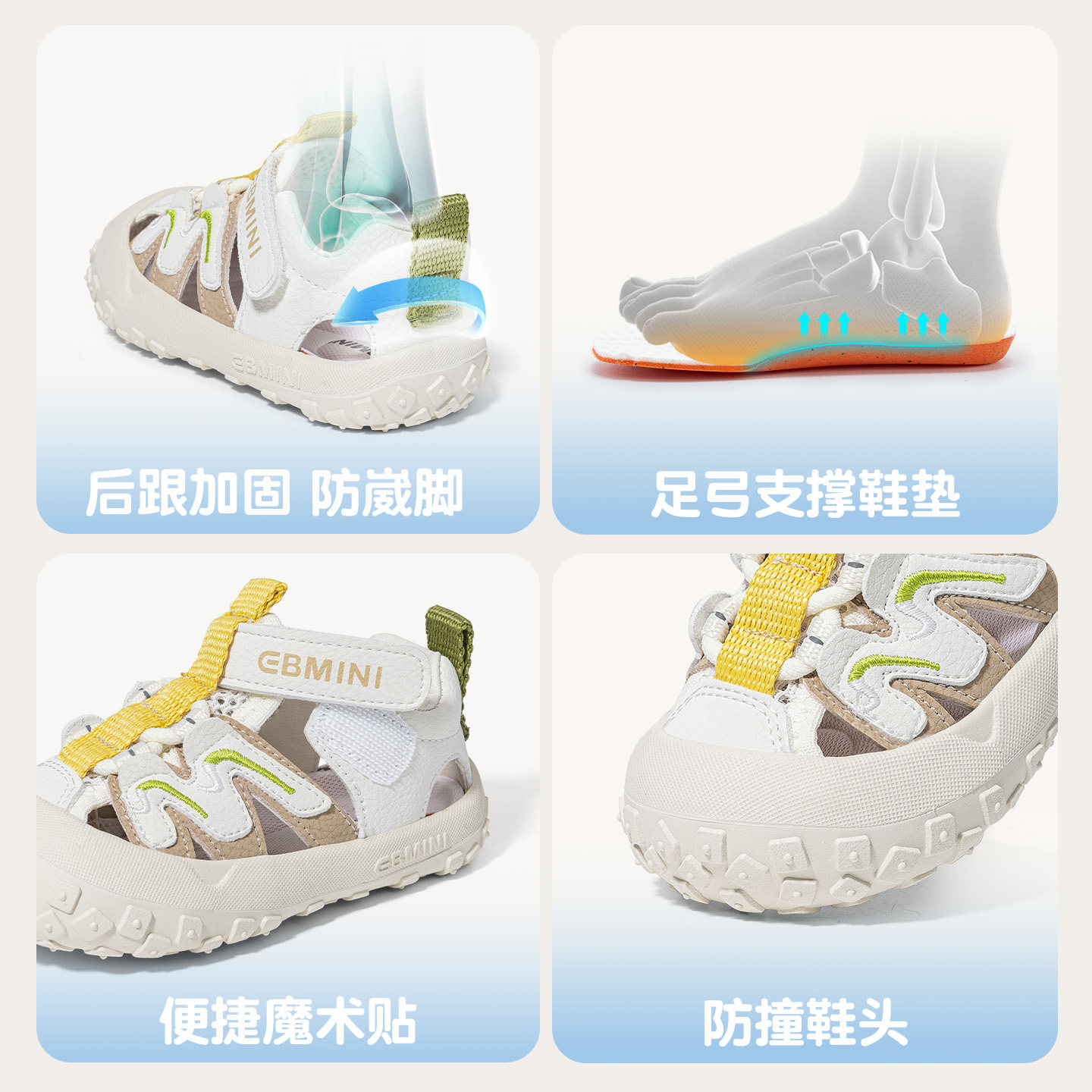 英贝米尼学步鞋专为初学步宝宝设计!软底防滑+包头保护+全网透气孔,稳走不累脚,妈妈更安心~168.9元到手!夏季新款轻量外穿凉鞋,兼顾沙滩、公园、室内多场景,性价比之选!给宝贝迈出步的温柔支撑,现