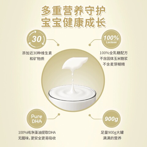 【立减84元,淘金币抵18元,到手483元,充值购物金享95折更划算】单罐900g,新一代OPO+,添加近30种维生素和矿物质,9:1臻优配比益生元,营养全能,双核守护。小肚肚舒适,欢畅一整天。