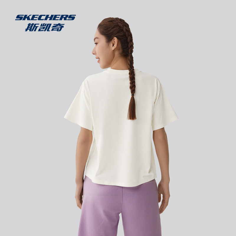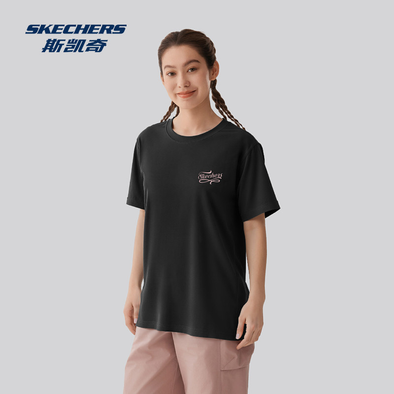 斯凯奇官方outlet春夏新品女士纯色休闲百搭针织短袖男子运动T恤