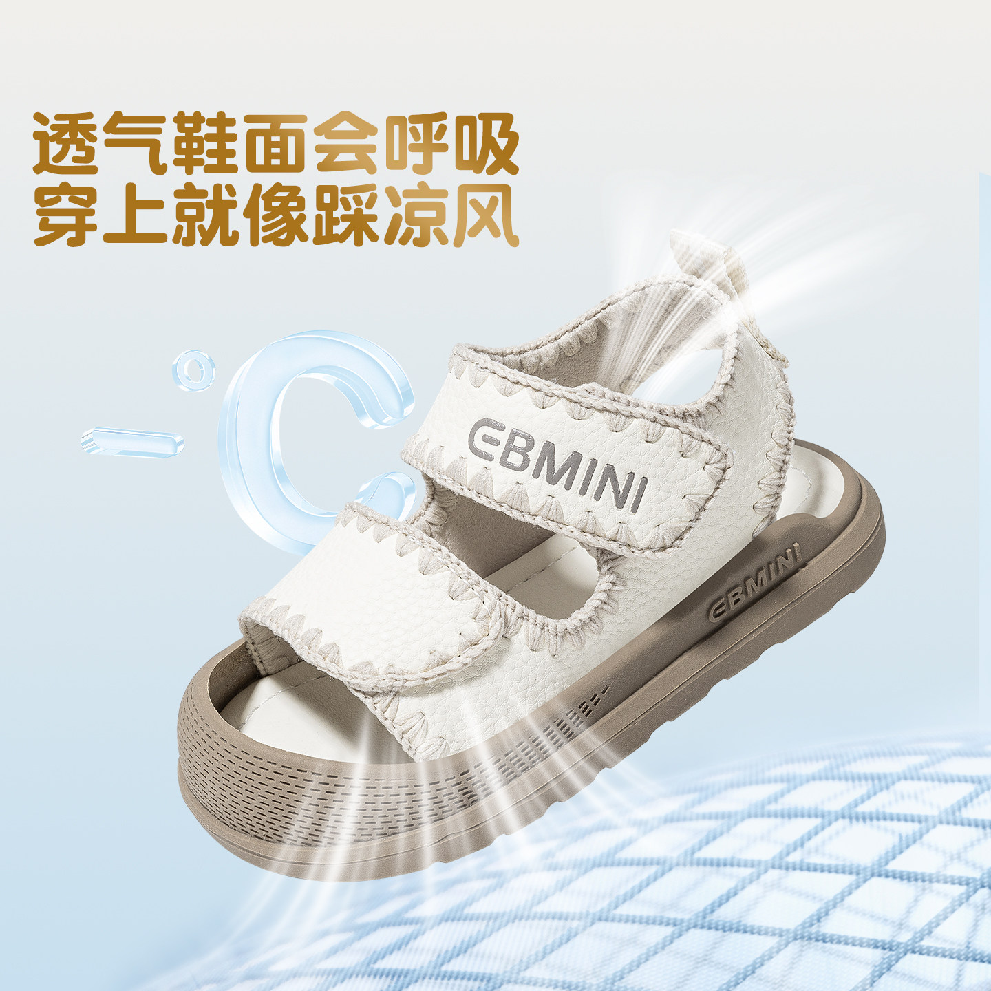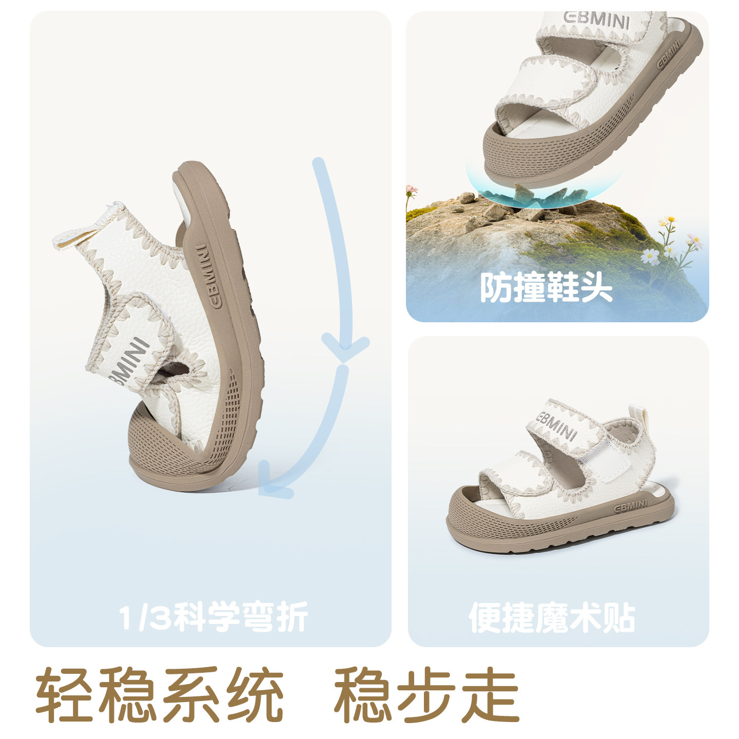 英贝米尼学步鞋专研宝宝足部发育,超柔软TPU底+360°透气网布,轻盈不闷脚,迈出稳稳一步!159.9元享高端婴童品牌品质!夏季新款防滑凉鞋,一脚蹬设计+可调节魔术贴,省心更贴心~小脚丫的夏日一步