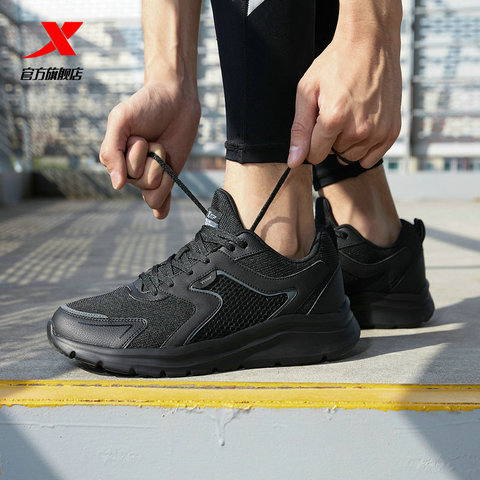 【大额卷+淘金币+消费券到手43.16】特步男鞋运动鞋男春季黑色减震跑步鞋网面透气男士跑鞋男款鞋子男。