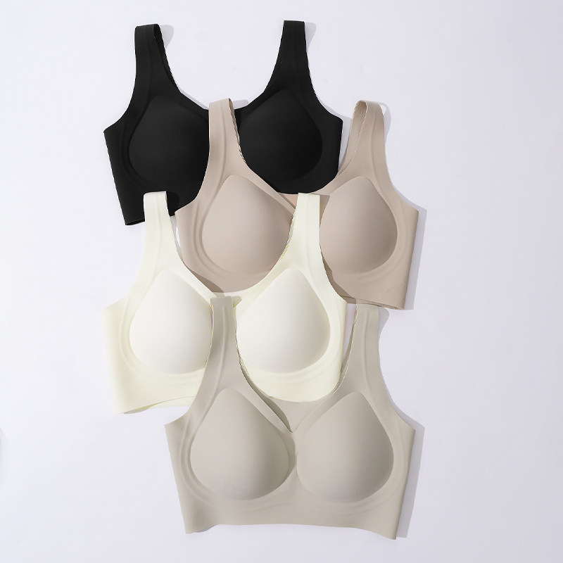 Kissy氧心乳胶暖绒背心果冻条无痕胸罩运动文胸无钢圈聚拢内衣女