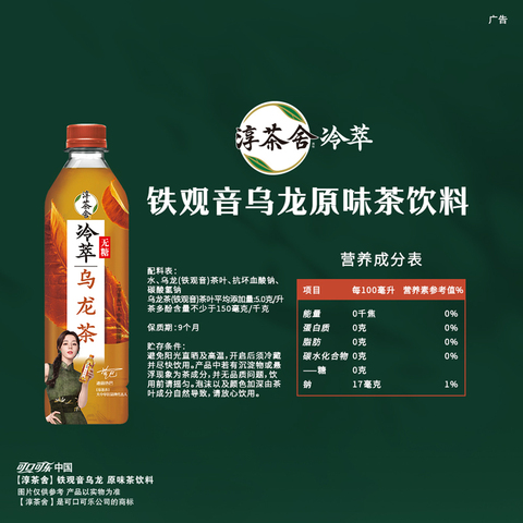【官方立减24.3元,领取5元券,叠金币到手34.7元,88vip32.89元】可口可乐淳茶舍茶饮料无糖铁观音乌龙,纯茶叶泡制,茶本味,自然香,藏苦涩,显回甘,0糖0脂0能力,健康轻饮