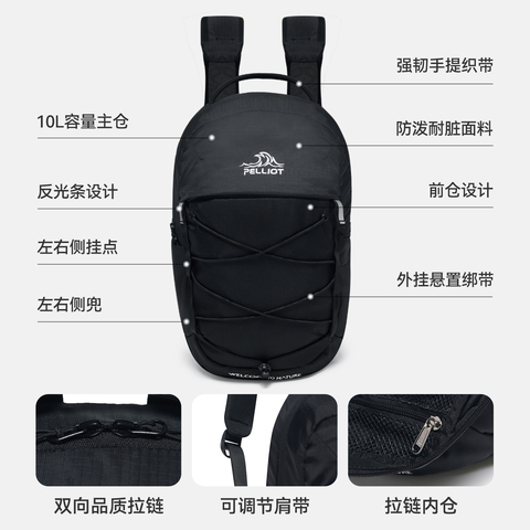 伯希和户外双肩包,防泼水设计,轻量化10L容量,男女通用,适合骑行、登山、徒步等户外活动,轻便实用,出行好搭档!