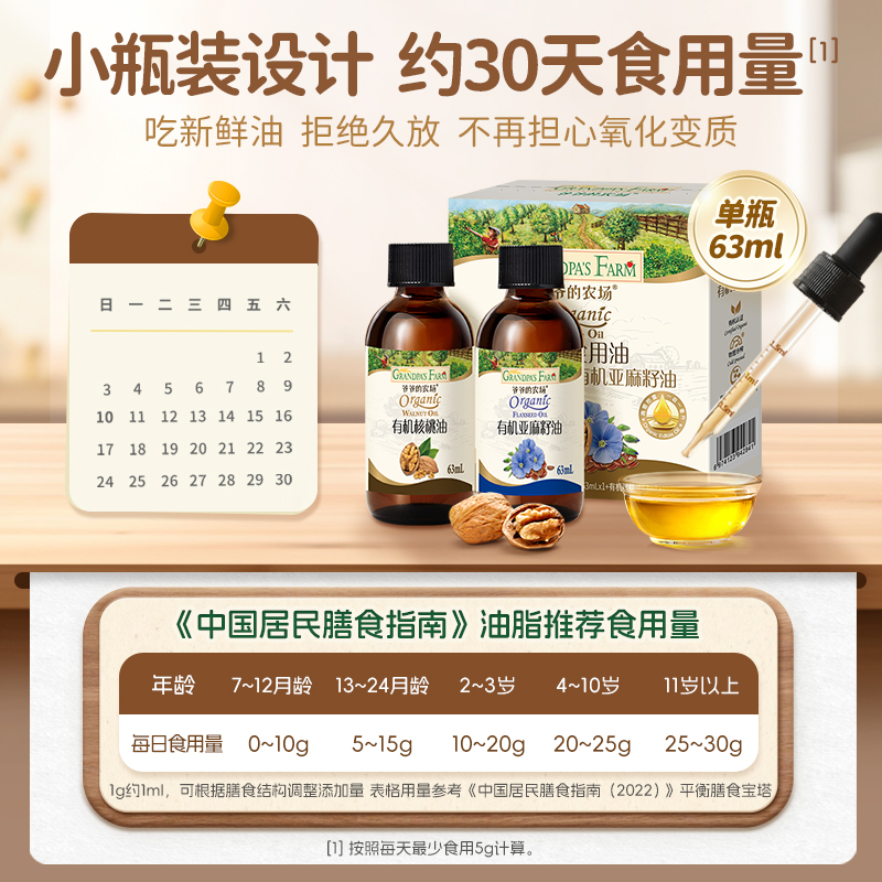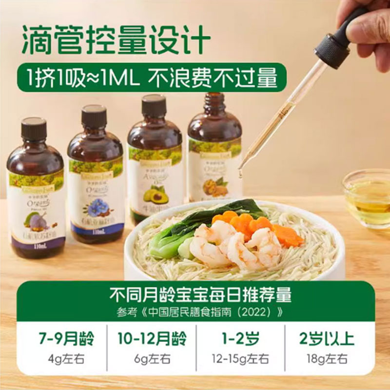 爷爷的农场有机核桃油亚麻籽油冷拌热炒牛油果油宝宝辅食用油婴幼