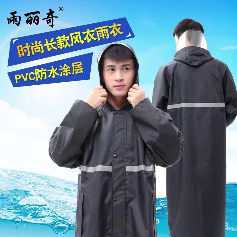长款加厚防水雨衣,适合徒步、骑行等户外活动,时尚设计,男女通用。