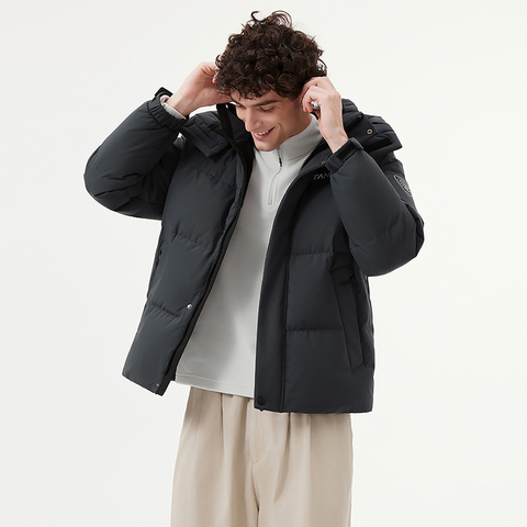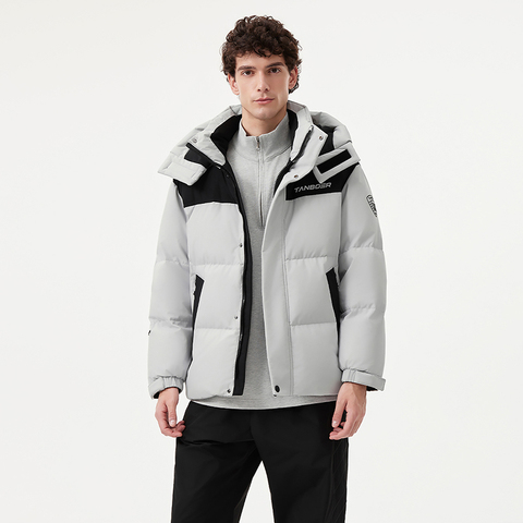 坦博尔2025新款羽绒服男士短款加厚拼接可脱卸帽保暖面包冬装外套