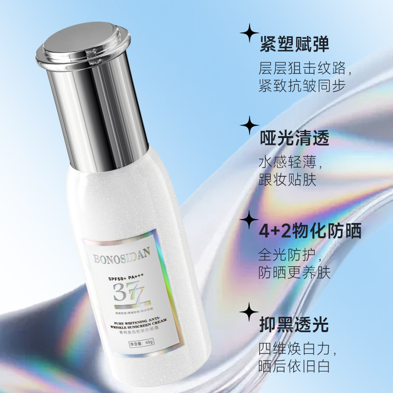 宝罗丝丹!377美白抗皱防晒霜40g*两瓶,39.9元/2瓶、109.9元/6瓶!SPF50+防晒值!PA+++!UVA/UVB物理化学双防体系!防晒的同时还兼美白养肤,让你轻松拥有妈生冷白皮!!