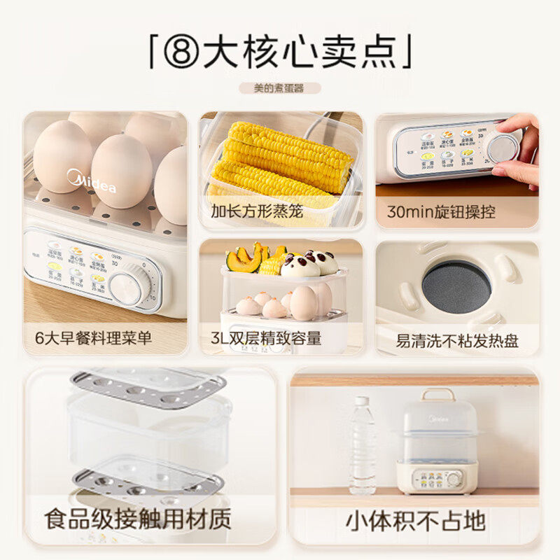 美的蒸蛋器煮蛋器自动断电烹饪机家用定时小型蒸锅神器新款早餐机